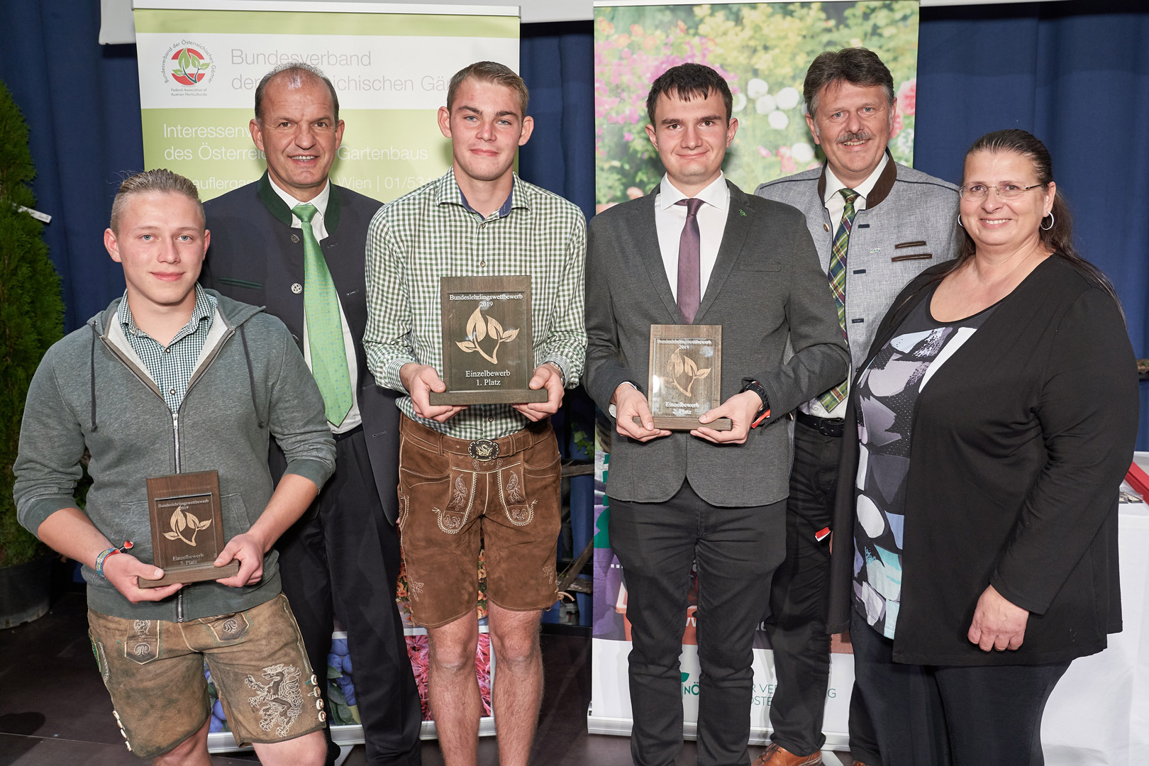 Platz eins war dem Team der Gartenbaufachschule Langenlois - bestehend aus Manuel Zemlizka, Roman Gattermann und Viktoria Pirker - auch beim Teambewerb nicht zu nehmen. Toll abschneiden konnte mit Platz drei aber auch das NÖ Berufsschülerteam mit Laura Koppatz (Lehrbetrieb Gärtnerei Bonigl in St. Pölten) sowie Peter Greßl und der Siegerin des NÖ Lehrlingswettbewerbs Melanie Kummer (Lehrbetrieb Blumen Lagler in Klein-Pöchlarn).