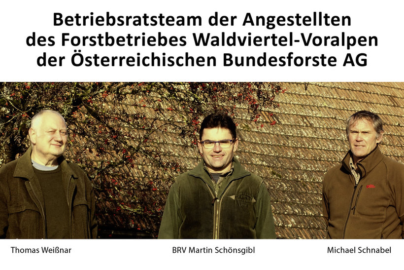 Bei den Angestellten wurde das bestehende Betriebsratsteam in gleicher Personalbesetzung und Funktion wiedergewählt. Revierleiter Martin Schönsgibl ist mittlerweile seit dem Jahr 1999 (!) als Betriebsratsvorsitzender tätig. Daneben verfügen auch sein Stellvertreter Thomas Weißnar (seit 2012) und Michael Schnabel (seit 2008) über langjährige Betriebsratserfahrung. Als Ersatzbetriebsräte stellten sich Theresa Kühberger, Lisa Palmeshofer und Marian Riedler zur Verfügung.