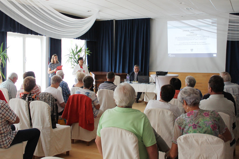 Nachdem LAK-Seniorenvertreterin Herta Zesch die Teilnehmer begrüßt hatte, folgte als erster Programmpunkt ein äußerst interessanter Vortrag von Notar Mag. Herbert Taschner zu den Themen Erbrecht und Patientenverfügung. Im Anschluss stand der Vortragende auch noch für Fragen aus dem Publikum zur Verfügung. Danach wartete auf die LAK-Senioren ein Stationenbetrieb aus 3 Teilen. Im Workshop mit Mag. Eva Kuba wurden die Teilnehmer mit Sessel-YOGA vertraut gemacht. Rund um das Thema Ernährung drehte sich die Station mit Mag. Angela Mörixbauer. Im Fokus standen dabei Praxistipps für einen gesunden Darm. Nicht fehlen durfte natürlich die bewährte Gesundheitsstraße, wo die Teilnehmer verschiedene Tests & Übungen, wie z.B. einen Lungenfunktion- und Hörtest sowie Cholesterin- und Blutzuckermessungen, durchführen konnten.