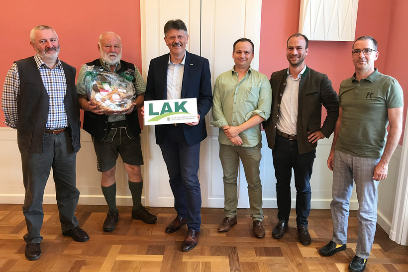V.l.: BRV Thomas Rührlinger, Rudolf Harrer, NÖ LAK-Präsident Andreas Freistetter, BR Wolfgang Hofer, Forstmeister DI Hubert Hofmann und Markus Hiesberger von der Gewerkschaft GPA-djp.