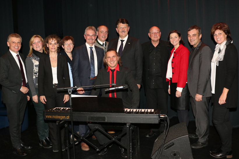 LAK-Kammeramtsdirektor Walter Medosch, NÖAAB-Landesgeschäftsführerin BR Sandra Kern, Gospelsängerin Patty Miller, Gabriele Langsenlehner (Bezirksobfrau des NÖAAB Scheibbs), Landesrat Karl Wilfing, St. Pöltens Vizebürgermeister Matthias Adl, NÖ LAK-Präsident Andreas Freistetter, Wolfgang Böck, LAbg. Doris Schmidl, LAbg. Anton Erber, NÖ LAK-Vizepräsidentin Josefa Czezatke (stehend v.l.n.r.) sowie Pianist Albert O. (sitzend).