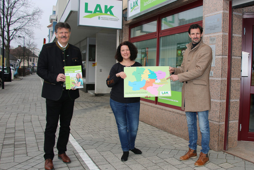 V.l.n.r.: NÖ LAK-Präsident Andreas Freistetter, Geschäftsstellenleiterin Martina Münzker und Gänserndorfs Bürgermeister LAbg. René Lobner.