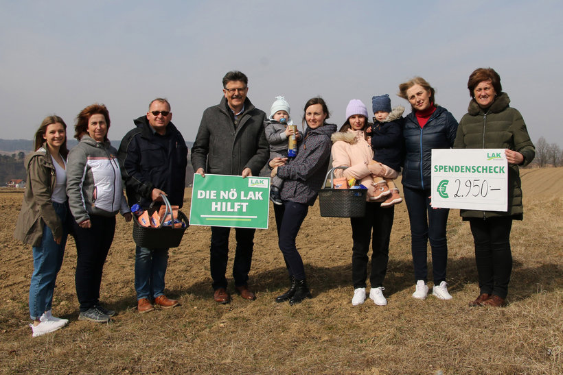 Vor kurzem wurden im nördlichen Waldviertel die ersten Spenden aus dem LAK-Fonds in der Höhe von EUR 2.950,- an ukrainische Familien, die vor dem Krieg in ihrer Heimat flüchten konnten, überreicht. Dabei zeigte die Familie Wunderlich, die in Obergrünbach im Bezirk Waidhofen/Thaya einen großen Landwirtschaftsbetrieb betreibt und bereits seit über 20 Jahren Saisonarbeiter aus der Ukraine bei sich beschäftigt, großes soziales Engagement und nahm viele ihrer Beschäftigten, die ansonsten ab April oder im Juni zur Arbeit nach Österreich kommen, mitsamt deren Angehörigen und Kindern, insgesamt über 30 Personen, kurzerhand in ihren Arbeiterquartieren bei sich auf.