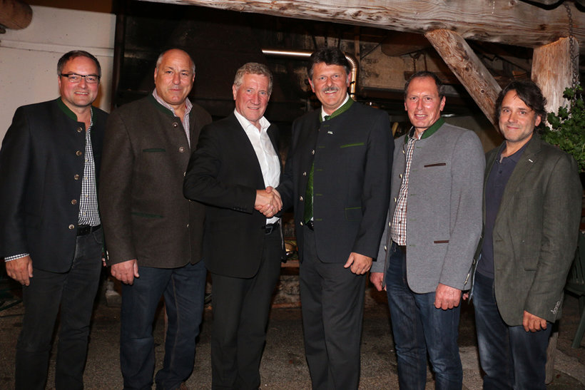 Der ÖLAKT durfte sich im Rahmen seines Aufenthalts in Vorarlberg über prominenten Besuch aus Politik & Sozialpartnerschaft freuen. V.l.n.r.: DI Richard Simma (LAK Vorarlberg), Vorarlbergs LAK-Präsident DI Hubert Malin, Vorarlbergs Agrarlandesrat Ing. Erich Schwärzler, ÖLAKT-Vorsitzender Präsident Ing. Andreas Freistetter, Vorarlbergs Landwirtschaftskammer-Präsident Josef Moosbrugger und Silbertals Bürgermeister Thomas Zudrell.