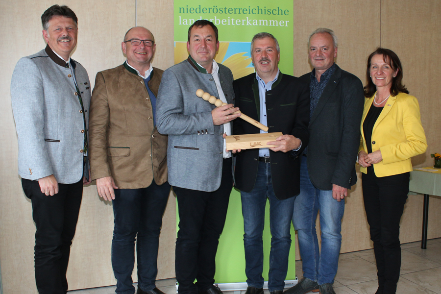 V.l.n.r.: Kammeramtsdirektor Walter Medosch, NÖ LAK-Vizepräsidentin Josefa Czezatke, Günther Edelmaier, Manfred Schuh, NÖ LAK-Präsident Andreas Freistetter und NÖ LAK-Vizepräsident Alois Karner.