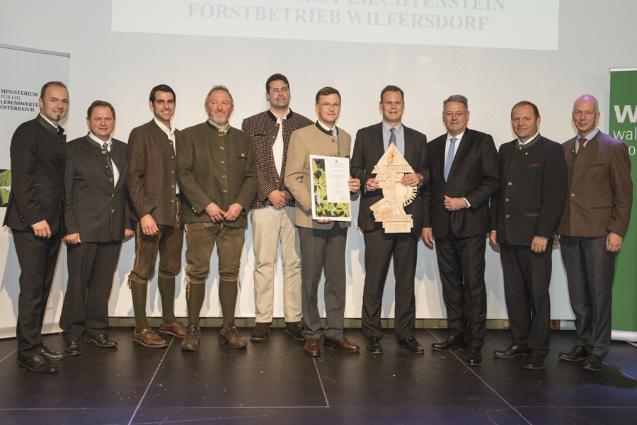 Erstmalig verliehen wurde der Staatspreis heuer in der Sonderkategorie „Klimafitter Wald”, um die besondere Bedeutung des Waldes beim Klimaschutz hervorzuheben. Als Großbetrieb mit dem Staatspreis für beispielhafte Waldwirtschaft 2017 sowie in der Sonderkategorie für klimafitte Waldwirtschaft ausgezeichnet wurde der Forstbetrieb Wilfersdorf der Stiftung Fürst Liechtenstein, die insgesamt über 50 LAK-zugehörige Dienstnehmer beschäftigt. Geehrt wurde der Betrieb für seine hochwertige Nutzholzproduktion von über 30 verschiedenen Baumarten, wobei forstliche Bewirtschaftung und Naturschutz vorbildlich zusammenspielen.