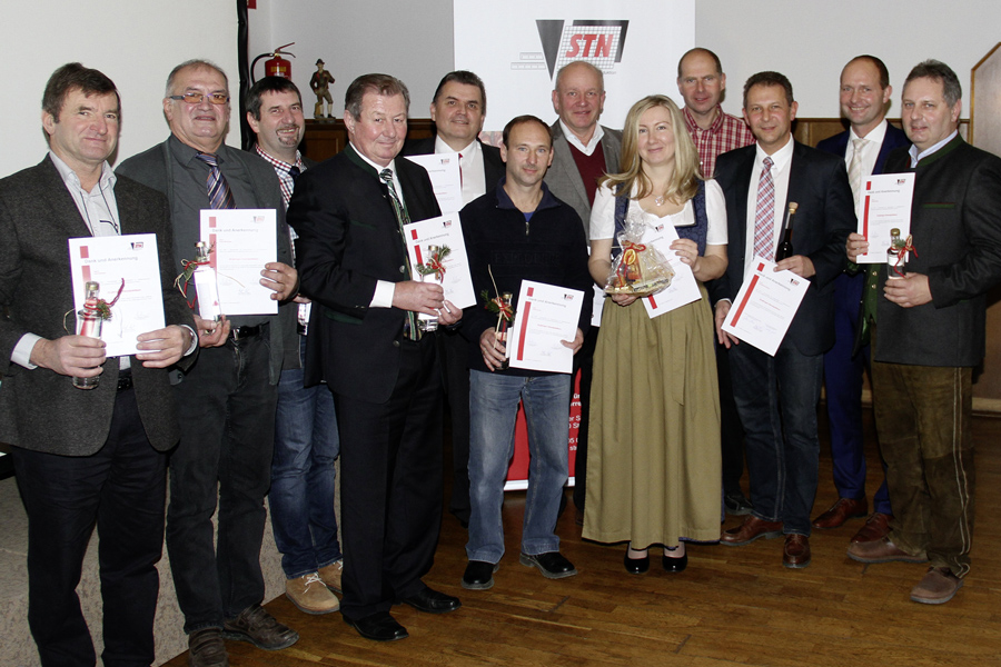 Seit 25 Jahren für die STN tätig: Karl Kummer, Franz Bischinger, Herbert Madner, Karl Brückl, GF Dr. Andreas Moser, Johann Lendl, Herbert Pfeiffer, Andrea Bernhard, Gerhard Pinkl, GF Manfred Roitner, Beirat Ing. Rupert Hagler und Franz Schrefl